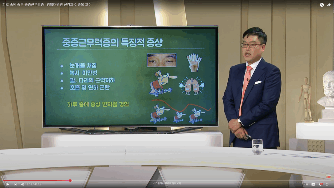 홈 말초신경근육질환 신경근접합부질환 중증근무력증 – 약손 말초신경근육질환신경근접합부질환 중증근무력증 – 약손 By 이종목 - 2025년 08월 26일 169 0 FacebookTwitterWhatsAppTelegramNaver 대구 MBC 약손에 출연하여, 중증근무력증에 대해 알아 보았습니다. #신경과 #두통 #이종목신경과 #이종목신경과의원 #손발저림 #TMS #자율신경 #편두통 #근전도 #신경전도 #말초신경 #대구신경과 #대구중구신경과 #명덕역신경과 #대구수성구신경과 #대구남구신경과 #유전자검사 관련 기사저자에서 더 많은 면역억제제 복용하면서 성공한 다이어트 후기 면역억제제 복용자와 COVID-19백신 중증근무력증, 자가증상 회신 남기기 취소 Please enter your comment! Please enter your name here You have entered an incorrect email address! Please enter your email address here Save my name, email, and website in this browser for the next time I comment.